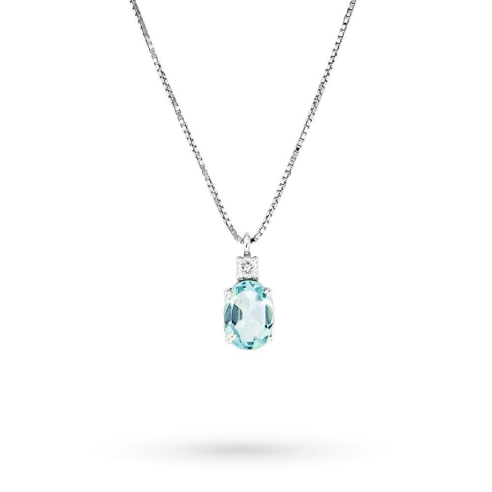 Collana Acquamarina Ovale 6×4 Con Diamante