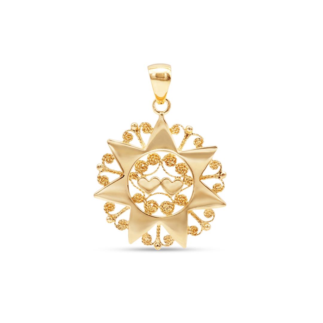 La Presentosa è un gioiello simbolo dell’antica tradizione abruzzese, caratterizzato dalla sua forma a stella decorata con un cuore (o due) al centro, circondato da intricate spirali di filigrana. Questo prezioso ornamento, realizzato artigianalmente in argento 925 dorato, rappresenta un dono d’amore carico di significato, tradizionalmente indossato vicino al cuore come simbolo di fedeltà e augurio di fertilità.