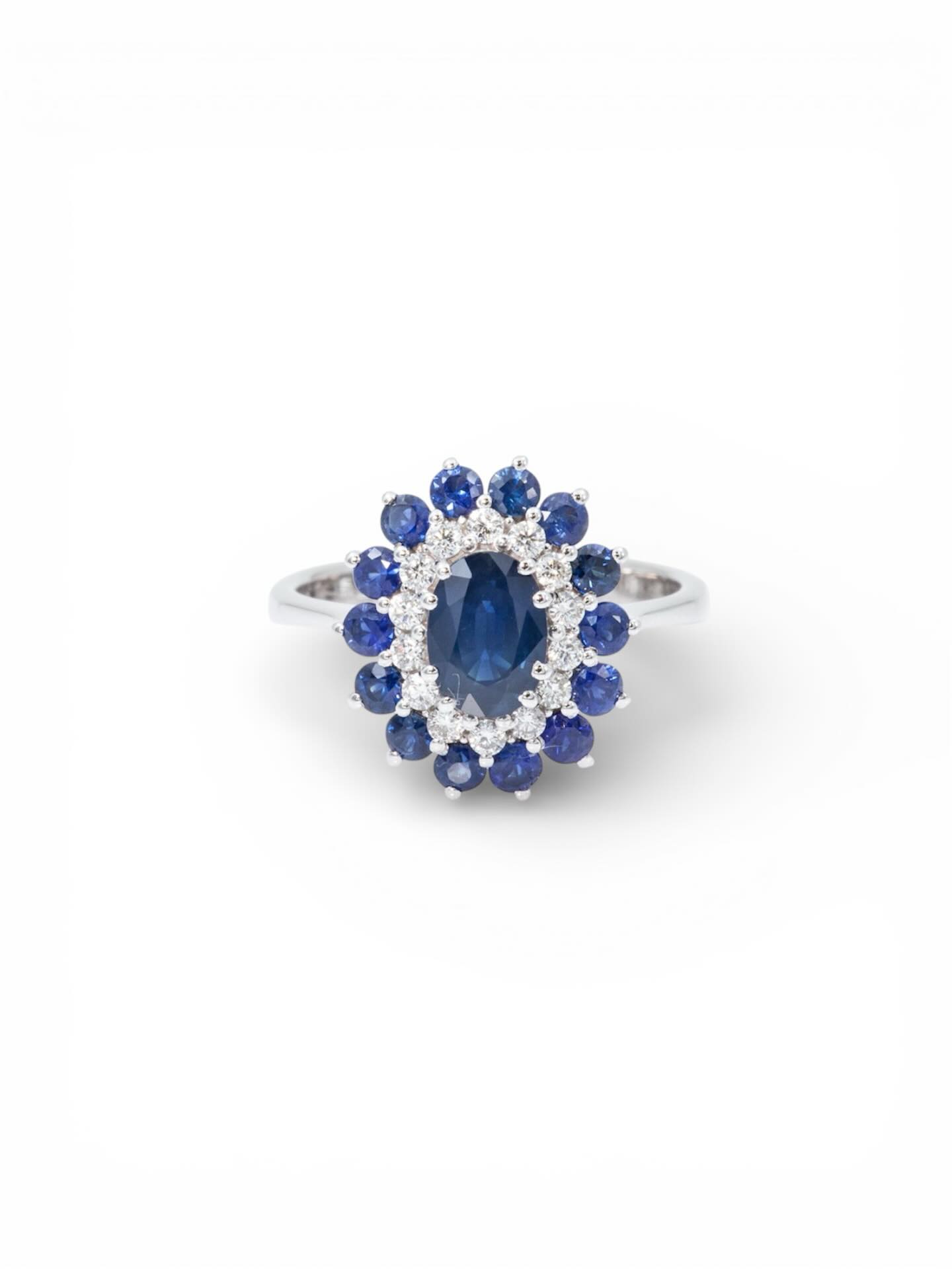 Esplora l’eleganza senza tempo con il Royal Ring di MONTI, un capolavoro di artigianato che unisce bellezza e raffinatezza. Realizzato in oro bianco 18 carati (2.70 gr), questo anello è impreziosito da uno splendido zaffiro naturale dal colore intenso e brillante. A completare il design, una raffinata selezione di diamanti di alta qualità, che donano ulteriore luminosità al gioiello.